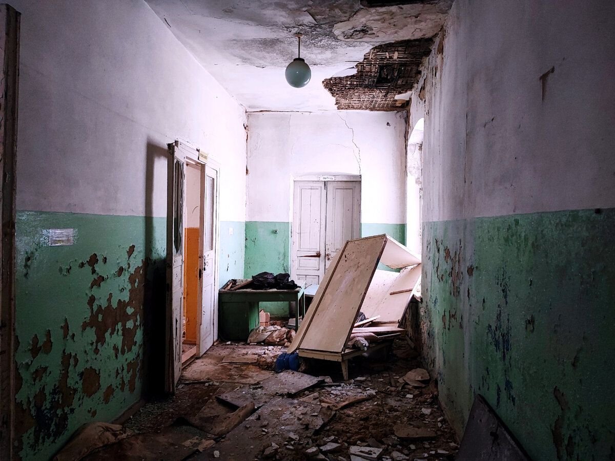 Я дергаю дверь. Закрывать. Рядом разбитое окно. Войти. Первая комната пуста, но уже в коридоре, по надписям на дверях становится понятно, что я попал в больницу.