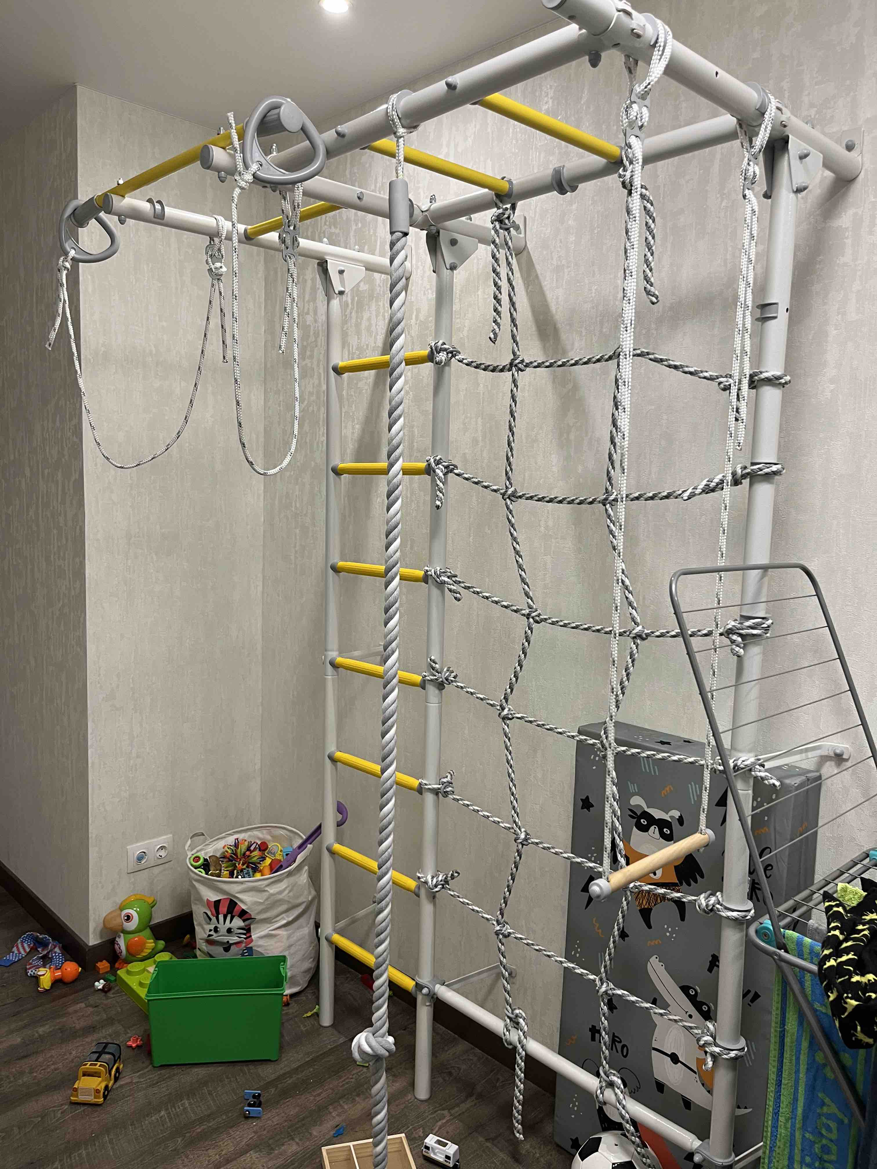 Также в набор входит шведская стенка «ПРОФИ» высотой 217 см, которая идеально подходит для домашнего использования. Она компактна, но при этом способна выдержать вес до 250 кг. Наличие брусьев позволяет выполнять отжимания и упражнения на пресс.