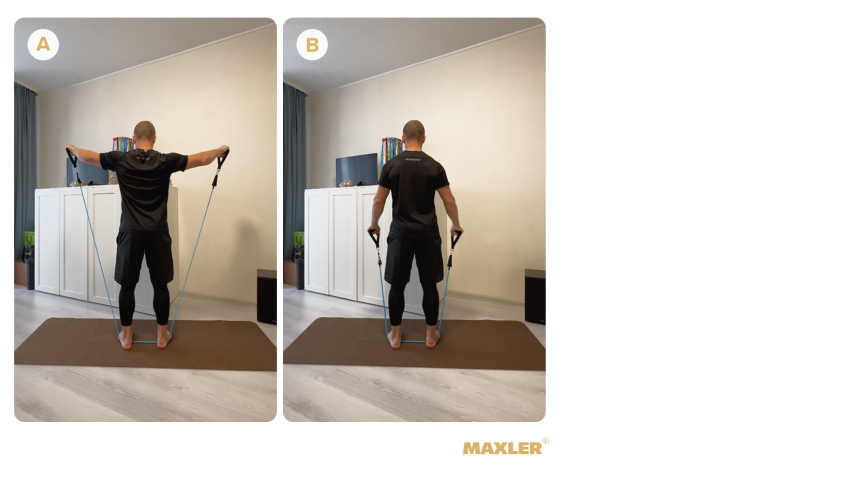 - Техника выполнения: Встаньте прямо, ноги на ширине плеч, слегка согнуты в коленях. Спина прямая. Руки слегка согнуты в локтях. На выдохе поднимите руки в стороны до уровня плеч, чувствуя напряжение в плечах. На вдохе медленно опустите руки.