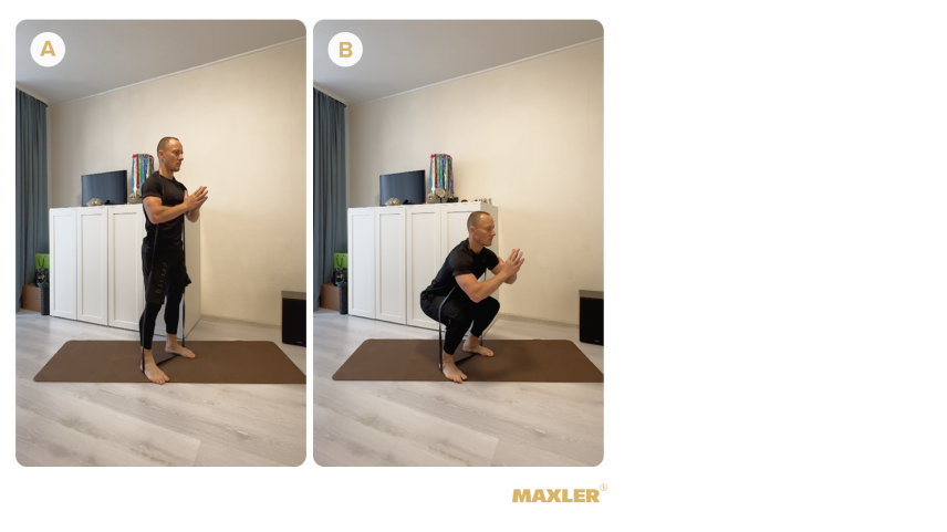 1. Приседания (без веса или с отягощением) резинка, гантели.